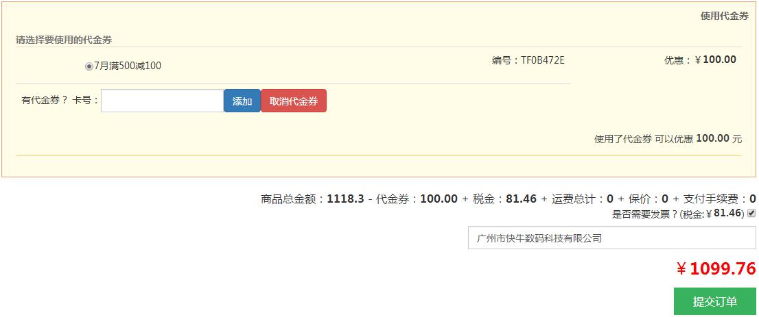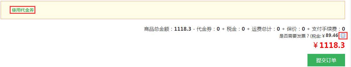 (5)结算信息:代金劵、优惠券的选择,发票的勾选。